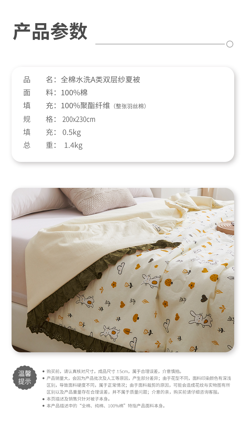 全棉A类双层纱夏被价格_图片_参数-美诺辰